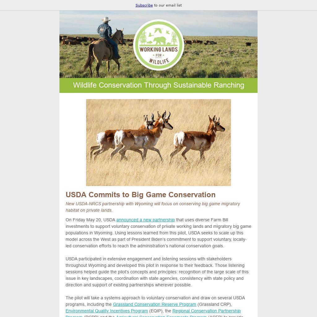 On Friday May 20, USDA announced a new partnership that uses diverse Farm Bill investments to support voluntary conservation of private working lands and migratory big game populations in Wyoming. Using lessons learned from this pilot, USDA seeks to scale up this model across the West as part of President Biden’s commitment to support voluntary, locally-led conservation efforts to reach the administration’s national conservation goals.