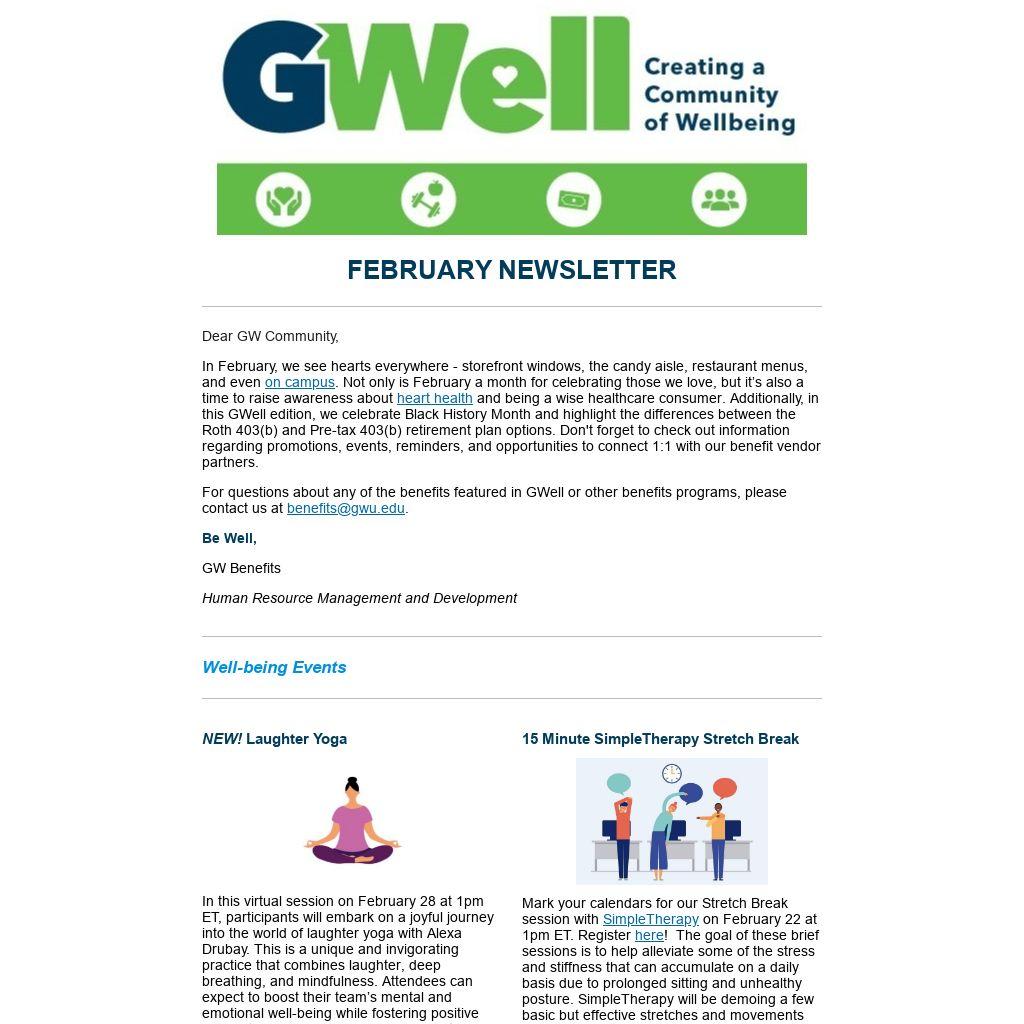 For questions about any of the benefits featured in GWell or other benefits programs, please contact us at benefits@gwu.edu.