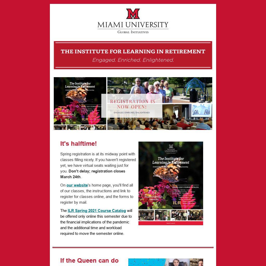 While virtual, we have two easy ways to register--online or by mail. Online is your quickest option and immediately reserves your seat in each class. Online registration–accessed from the ILR website–takes only minutes and requires no passwords. Once you experience the ease of registering online, you'll understand the appeal. It's the most efficient means of registering, both for you and the ILR office. If registering by mail, if you're unable to print the registration form, simply send us your registration information, courses, and payment.