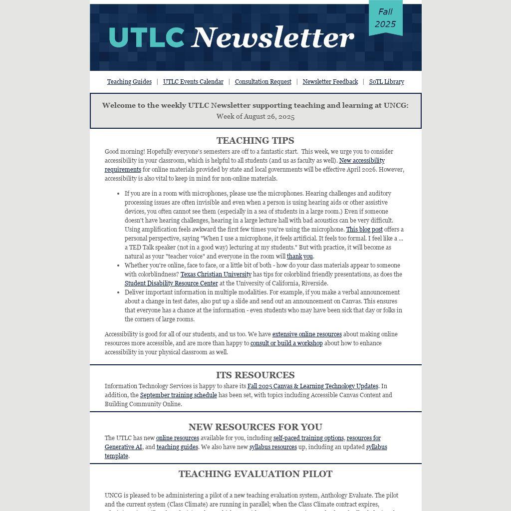 Welcome to the weekly UTLC Newsletter supporting teaching and learning at UNCG:
