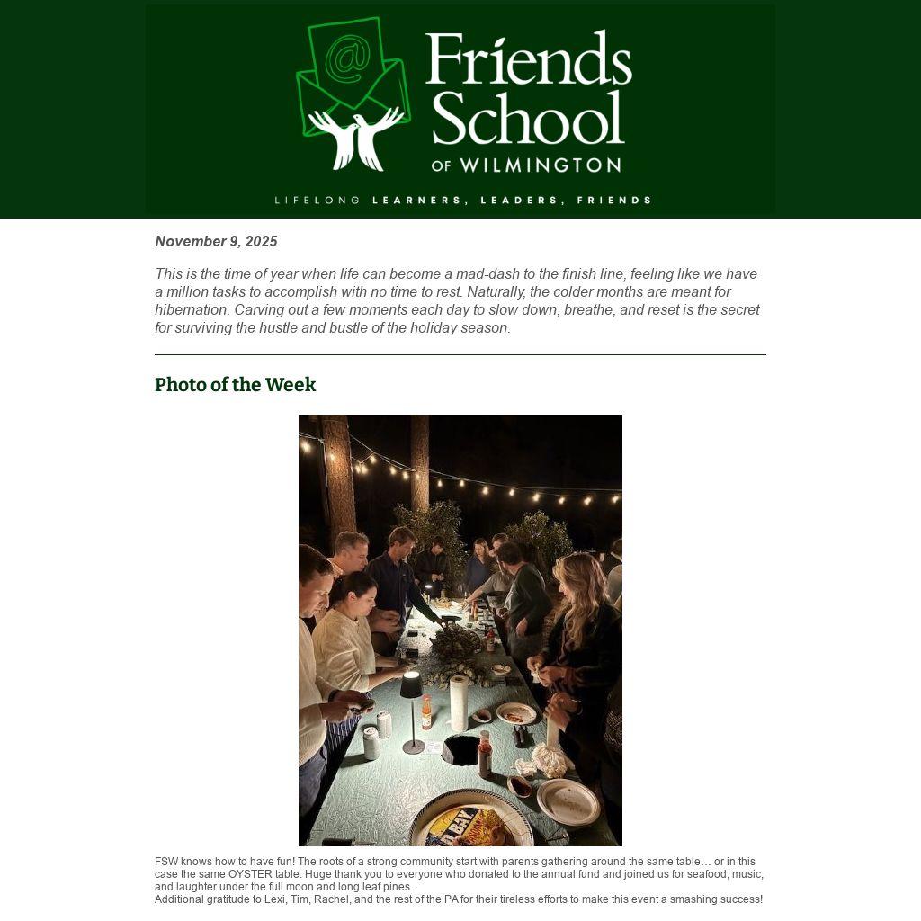 FSW knows how to have fun! The roots of a strong community start with parents gathering around the same table… or in this case the same OYSTER table. Huge thank you to everyone who donated to the annual fund and joined us for seafood, music, and laughter under the full moon and long leaf pines.