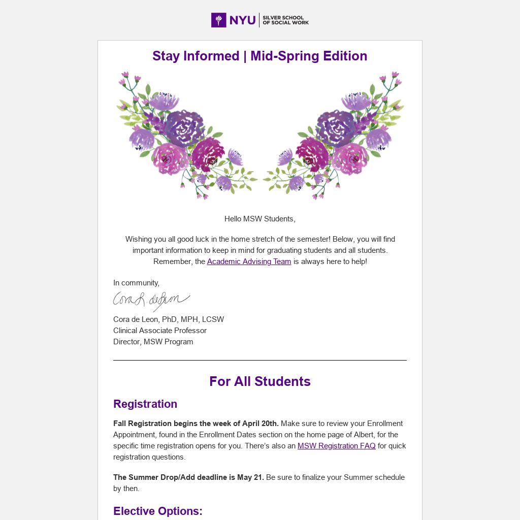 See you for our Summer Edition! If you have any questions in the meantime, please contact your Academic Advisor.