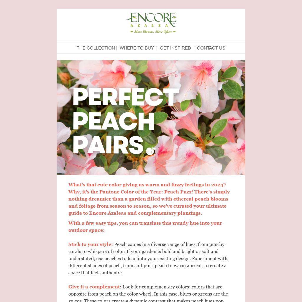 What's that cute color giving us warm and fuzzy feelings in 2024? Why, it's the Pantone Color of the Year: Peach Fuzz! There's simply nothing dreamier than a garden filled with ethereal peach blooms and foliage from season to season, so we've curated your ultimate guide to Encore Azaleas and complementary plantings.