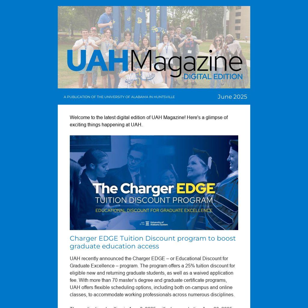 Welcome to the latest digital edition of UAH Magazine! Here's a glimpse of exciting things happening at UAH.