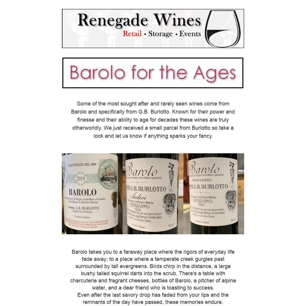 Barolo takes you to a faraway place where the rigors of everyday life fade away; to a place where a temperate creek gurgles past surrounded by tall evergreens. Birds chirp in the distance, a large bushy tailed squirrel darts into the scrub. There's a table with charcuterie and fragrant cheeses, bottles of Barolo, a pitcher of alpine water, and a dear friend who is toasting to success.
