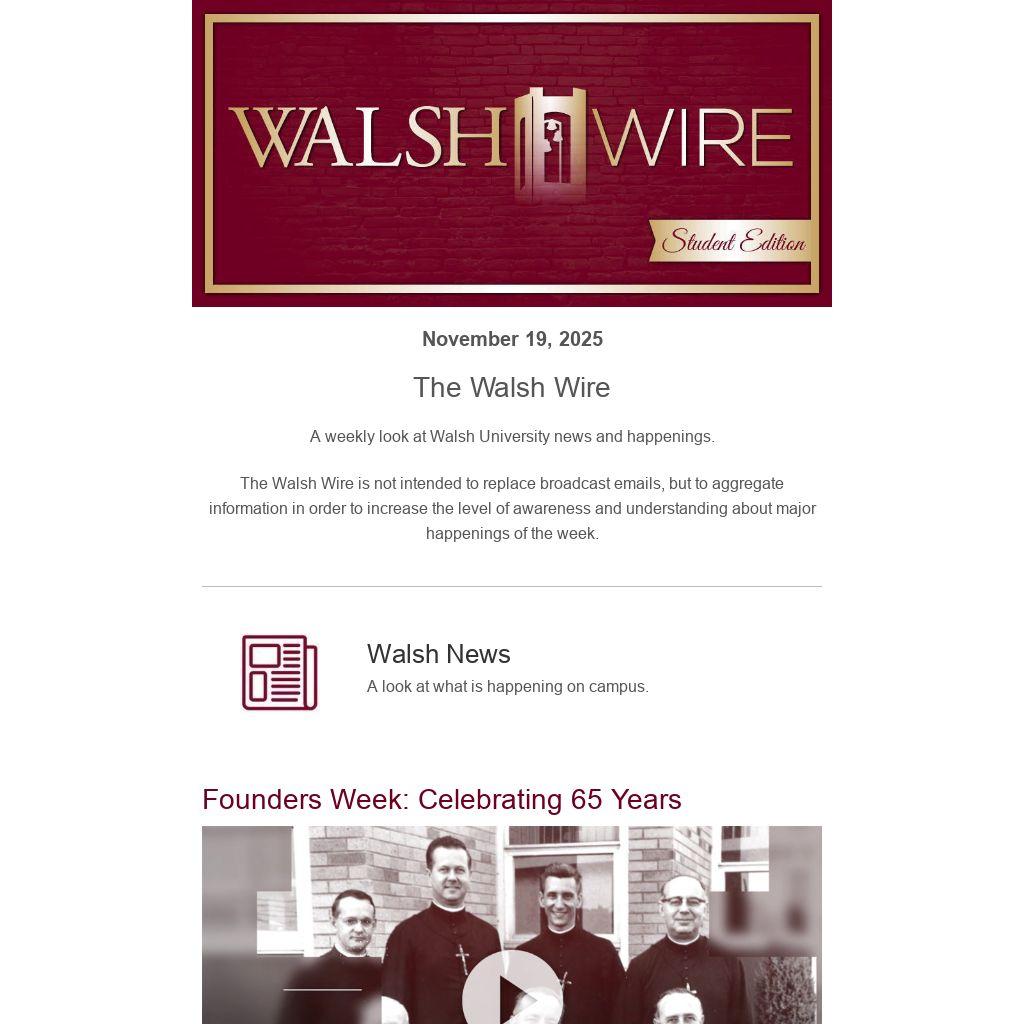 The Walsh Wire is not intended to replace broadcast emails, but to aggregate information in order to increase the level of awareness and understanding about major happenings of the week.