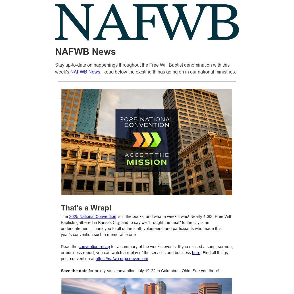 Share this newsletter with a friend and invite them to subscribe to receive all of our future emails. You can subscribe or find past newsletters at www.nafwb.org/news.