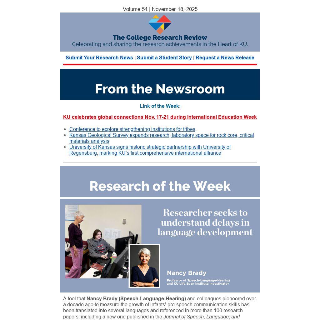Each year, the University of Kansas recognizes up to four mid-career faculty members as recipients of a University Scholarly Achievement Award. This $10,000 award recognizes a significant scholarly or research contribution, creative work (an exhibition, performance, composition, article or book, or major collaborative project) or a series of closely related contributions. This award covers all fields of scholarship represented at the University of Kansas, including but not limited to arts, humanities, architecture and design, music, mathematics, natural sciences, engineering, medicine, clinical science, pharmacy, social sciences, social welfare, education, journalism, law, libraries, and business. The Chancellor’s Office is now accepting nominations for the 2026 awards. The deadline for the submission of nominations is December 15, 2025.