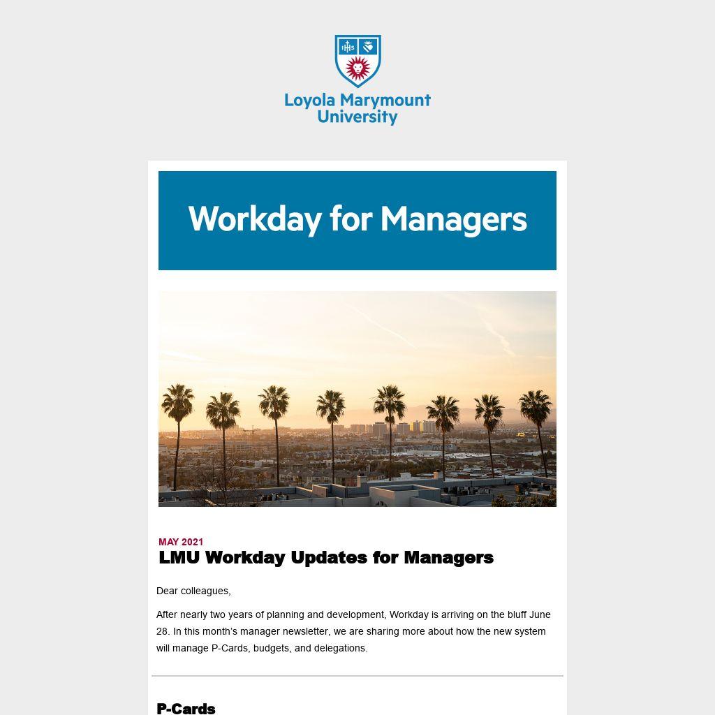 P-Cards- The vast majority of staff and faculty will retain their existing P-cards after migrating to Workday. LMU will email a new P-card agreement to every individual registered for a P-Card.
