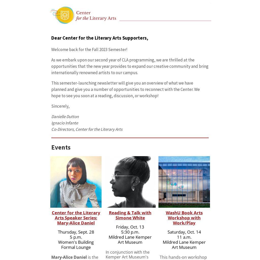 This semester-launching newsletter will give you an overview of what we have planned and give you a number of opportunities to reconnect with the Center. We hope to see you soon at a reading, discussion, or workshop!
