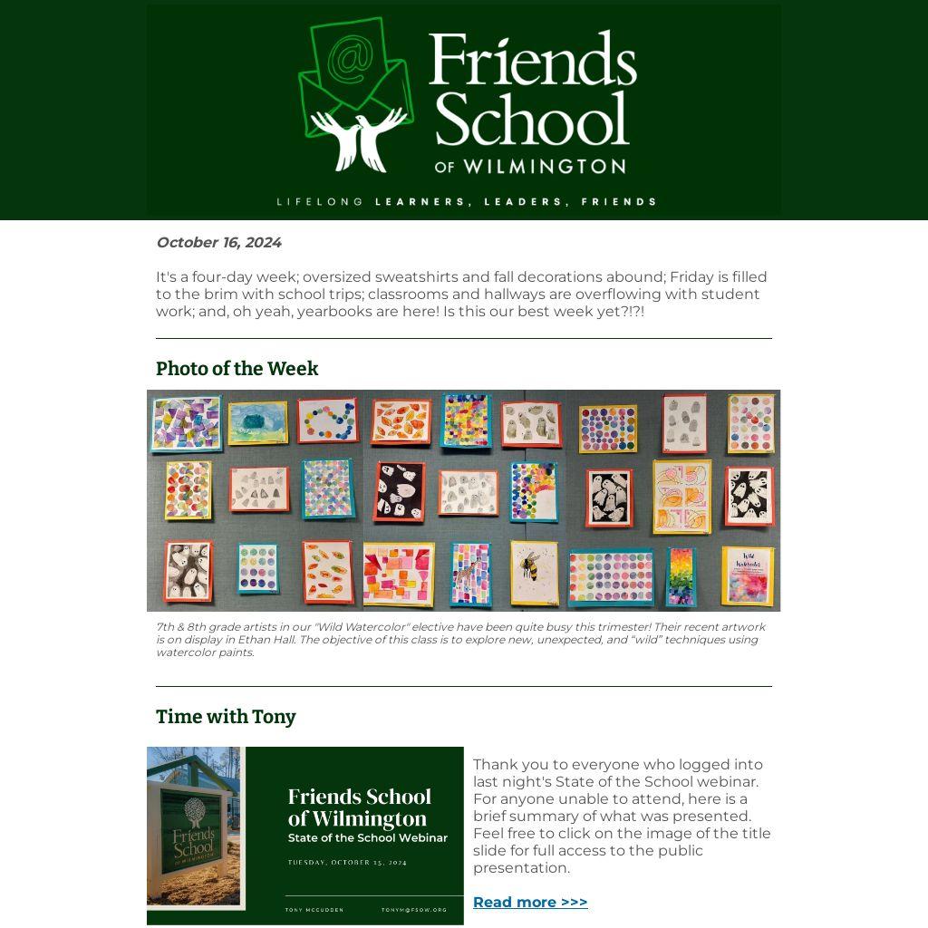 Friends, if your student is enrolled in the Robotics or Weird Science after-school clubs, you should have received a recent email from Auxiliary Program Coordinator Ashton. Due to the aftermath of Hurricane Milton, the instructor scheduled to teach both programs is currently in Florida assisting her family. We'll keep you posted on the classes' new start dates which we suspect should be up and running in just a couple weeks.