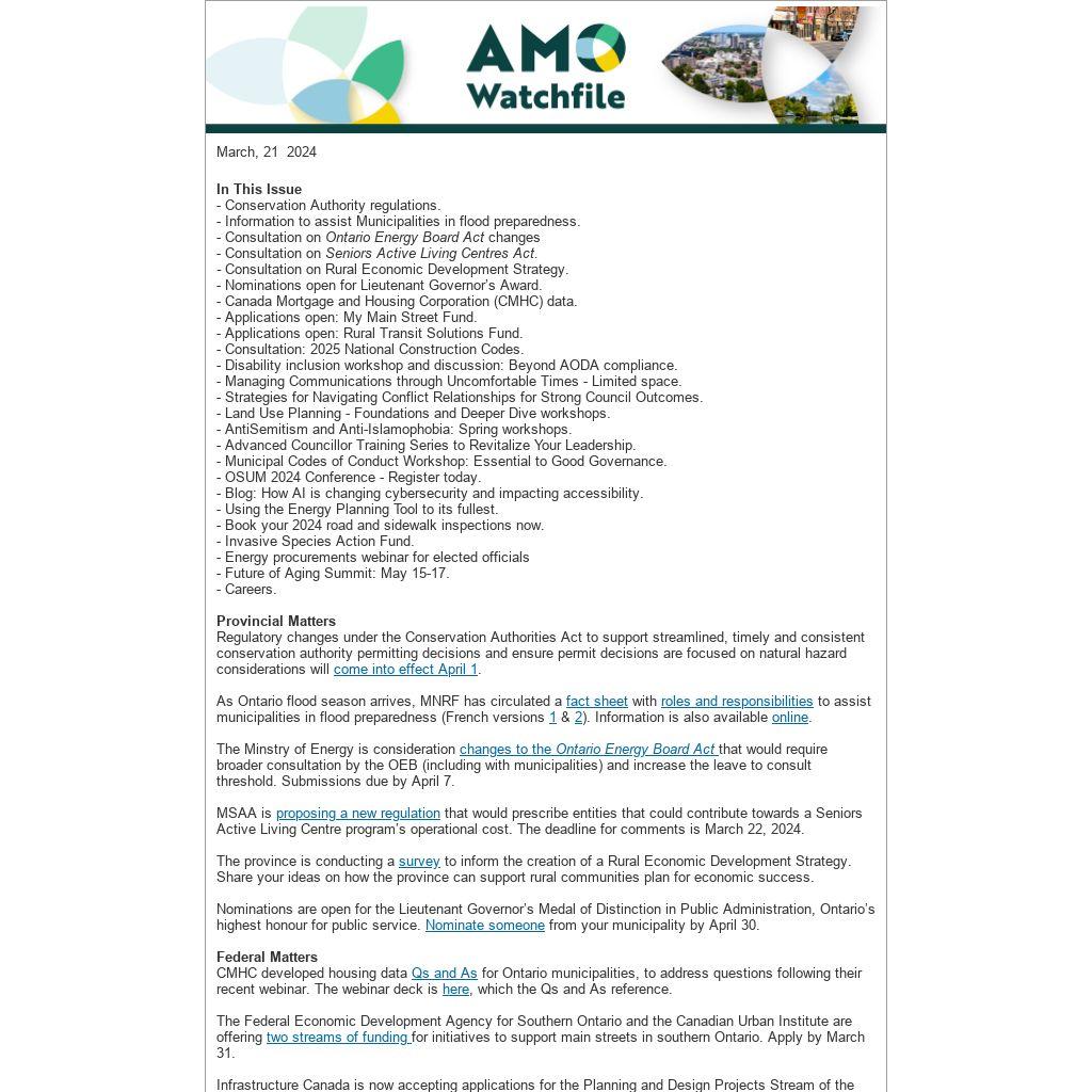 AMO’s is offering two education opportunities focused on planning issues and strategies: April 17 Foundations in Planning workshop builds foundational knowledge and insight into planning legislation and municipal requirements and roles and the April 18 Advanced Land Use Planning workshop works through case studies and lessons learned to build your strategic management and decision making on local planning issues.