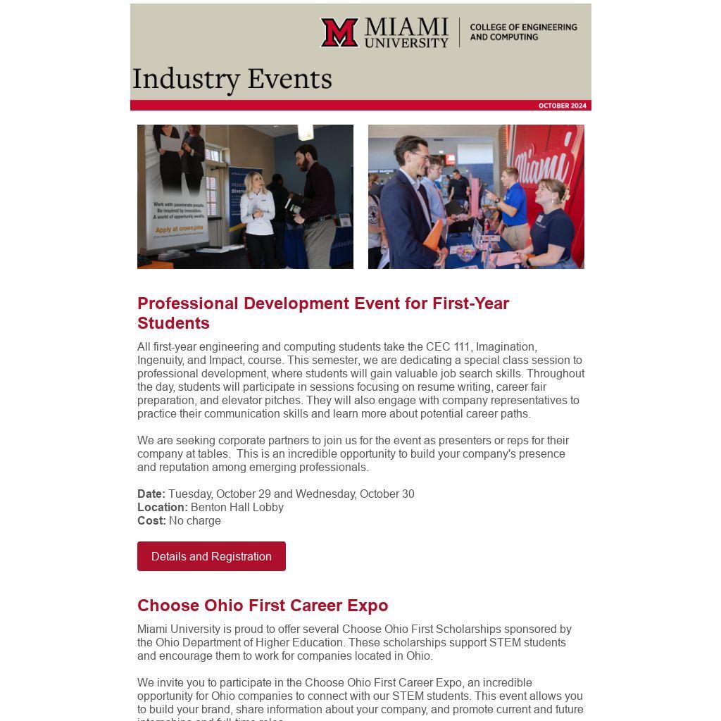We invite you to participate in the Choose Ohio First Career Expo, an incredible opportunity for Ohio companies to connect with our STEM students. This event allows you to build your brand, share information about your company, and promote current and future internships and full-time roles.