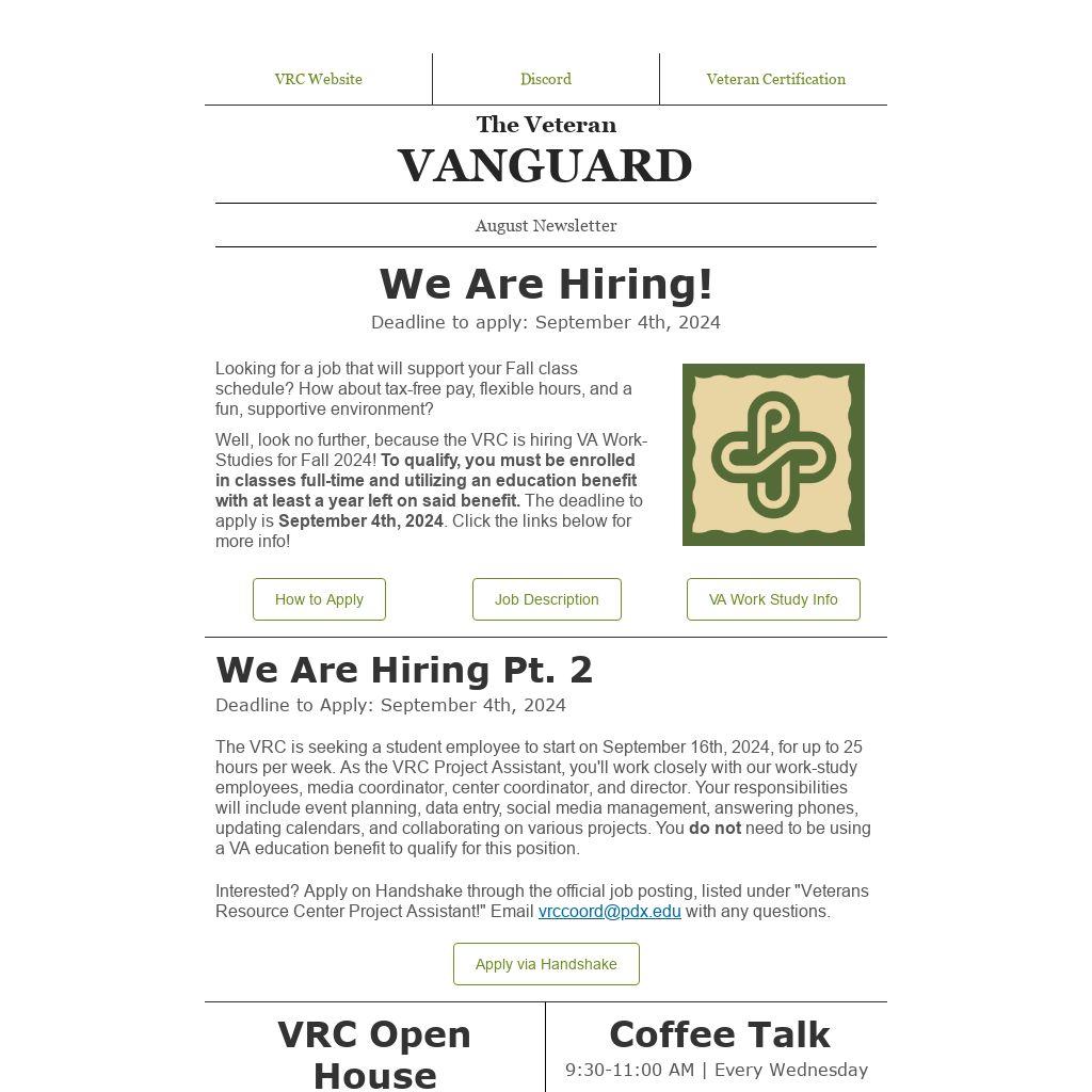 Interested? Apply on Handshake through the official job posting, listed under "Veterans Resource Center Project Assistant!" Email vrccoord@pdx.edu with any questions.