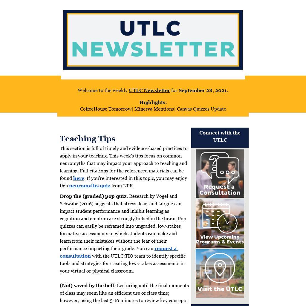 Welcome to the weekly UTLC Newsletter for September 28, 2021.