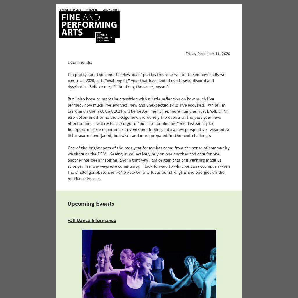 One of the bright spots of the past year for me has come from the sense of community we share as the DFPA. Seeing us collectively rely on one another and care for one another has been inspiring, and in that way I am certain that this year has made us stronger in many ways as a community. I look forward to what we can accomplish when the challenges abate and we’re able to fully focus our strengths and energies on the art that drives us.