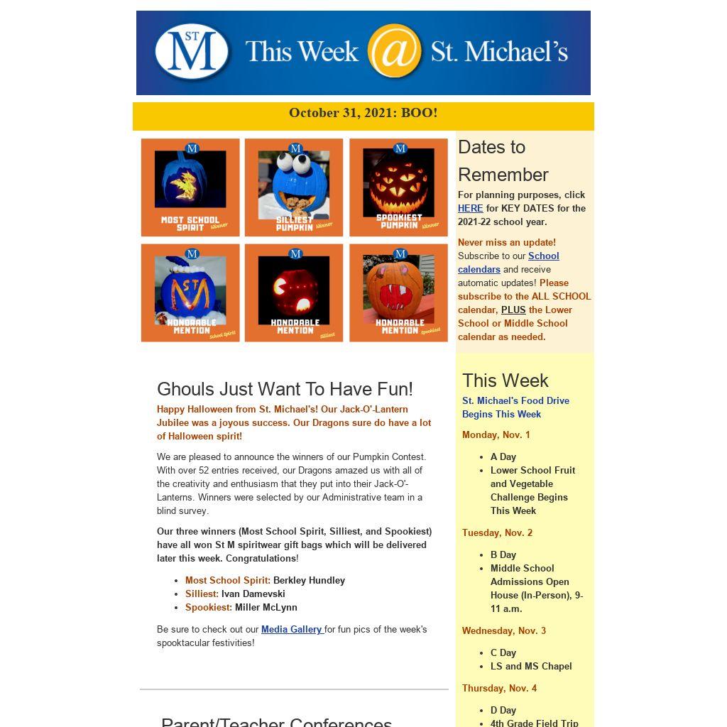 Happy Halloween from St. Michael's! Our Jack-O'-Lantern Jubilee was a joyous success. Our Dragons sure do have a lot of Halloween spirit!