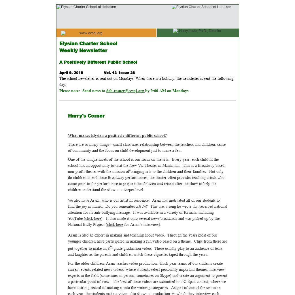 The school newsletter is sent out on Mondays. When there is a holiday, the newsletter is sent the following day.