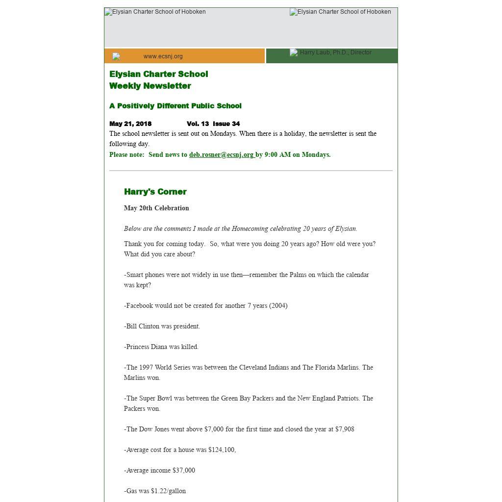 The school newsletter is sent out on Mondays. When there is a holiday, the newsletter is sent the following day.