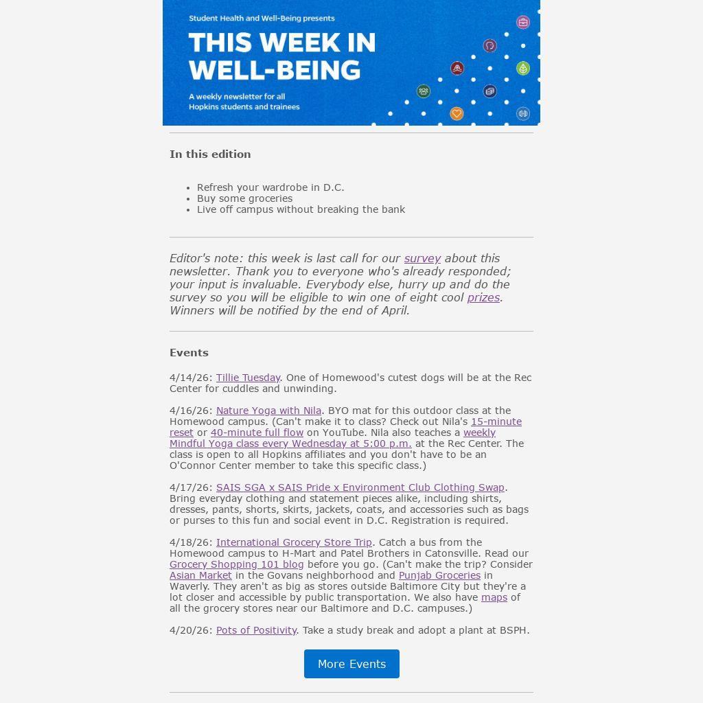 Editor's note: this week is last call for our survey about this newsletter. Thank you to everyone who's already responded; your input is invaluable. Everybody else, hurry up and do the survey so you will be eligible to win one of eight cool prizes. Winners will be notified by the end of April.