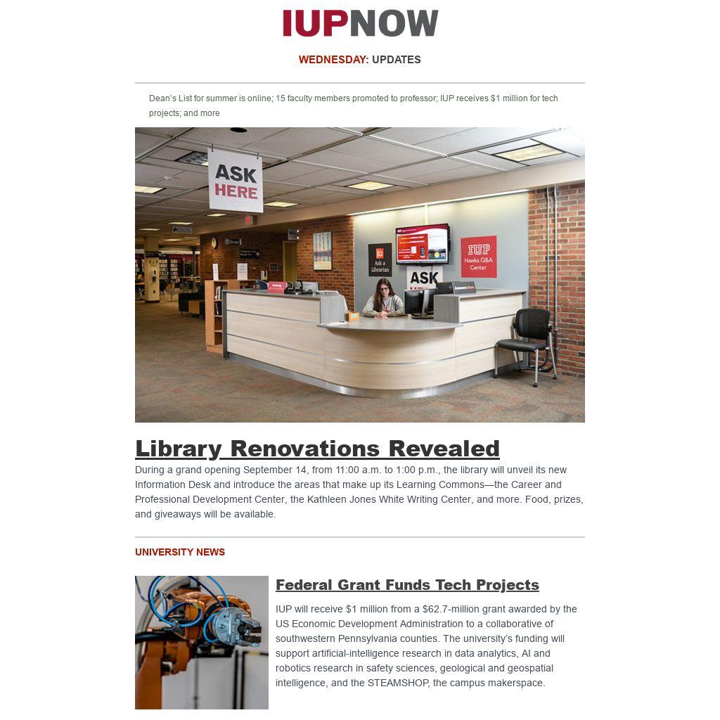 During a grand opening September 14, from 11:00 a.m. to 1:00 p.m., the library will unveil its new Information Desk and introduce the areas that make up its Learning Commons—the Career and Professional Development Center, the Kathleen Jones White Writing Center, and more. Food, prizes, and giveaways will be available.