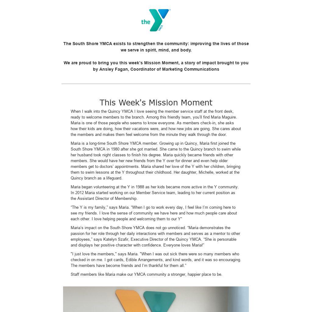 Maria’s impact on the South Shore YMCA does not go unnoticed. “Maria demonstrates the passion for her role through her daily interactions with members and serves as a mentor to other employees,” says Katelyn Szafir, Executive Director of the Quincy YMCA. “She is personable and displays her positive character with confidence. Everyone loves Maria!”