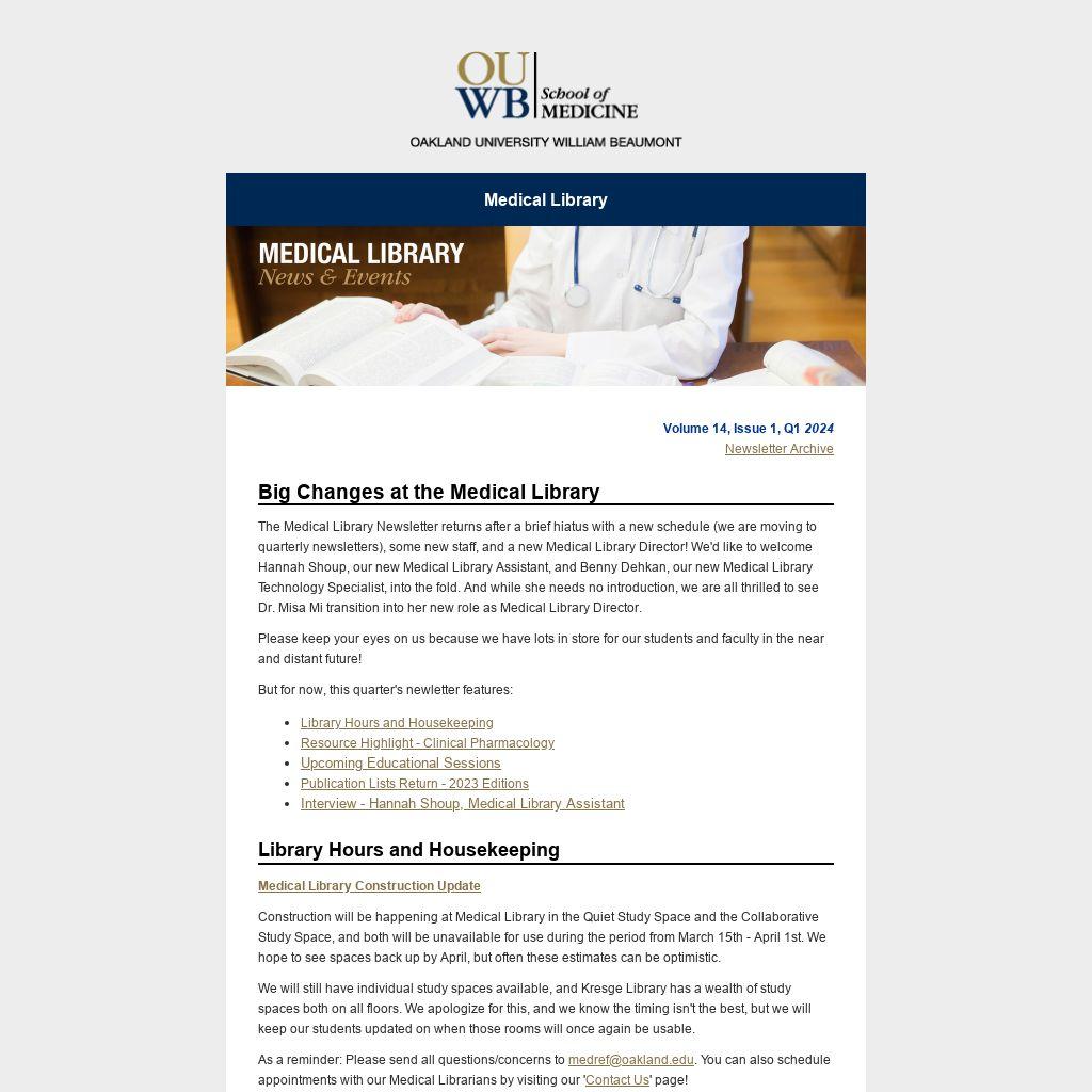 Q: What drew you to OUWB? How have you found the medical library since joining up?