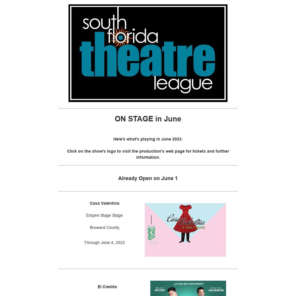 This email blast and other programs of the South Florida Theatre League are made possible with the support of Miami-Dade County Department of Cultural Affairs and the Cultural Affairs Council, the Miami-Dade County Mayor and Board of County Commissioners.