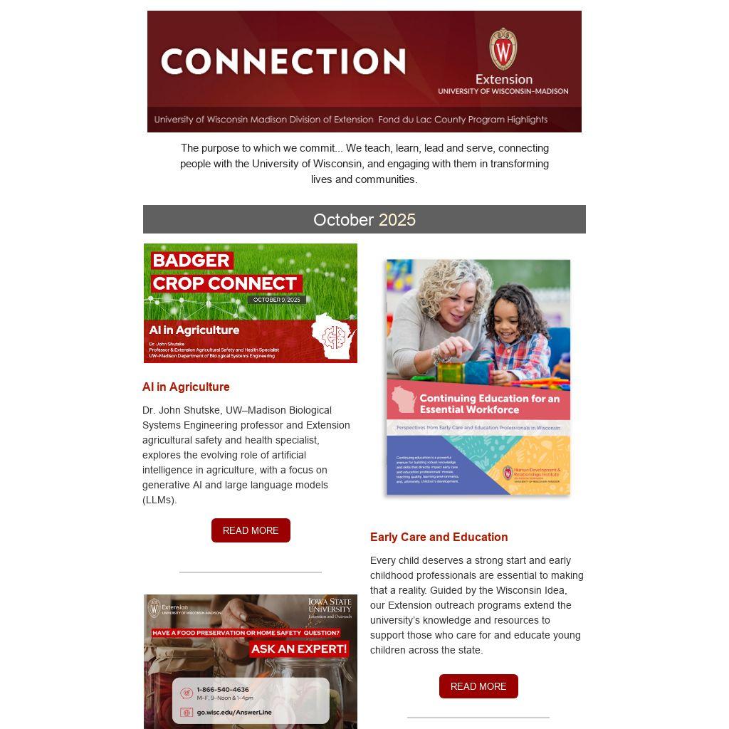 Wisconsin residents can now call the AnswerLine, provided through a partnership between UW–Madison Extension and Iowa State University Extension and Outreach, for trusted, research-based help with canning, freezing, drying, and more. Staffed by trained Extension professionals, the service offers reliable guidance you can count on.