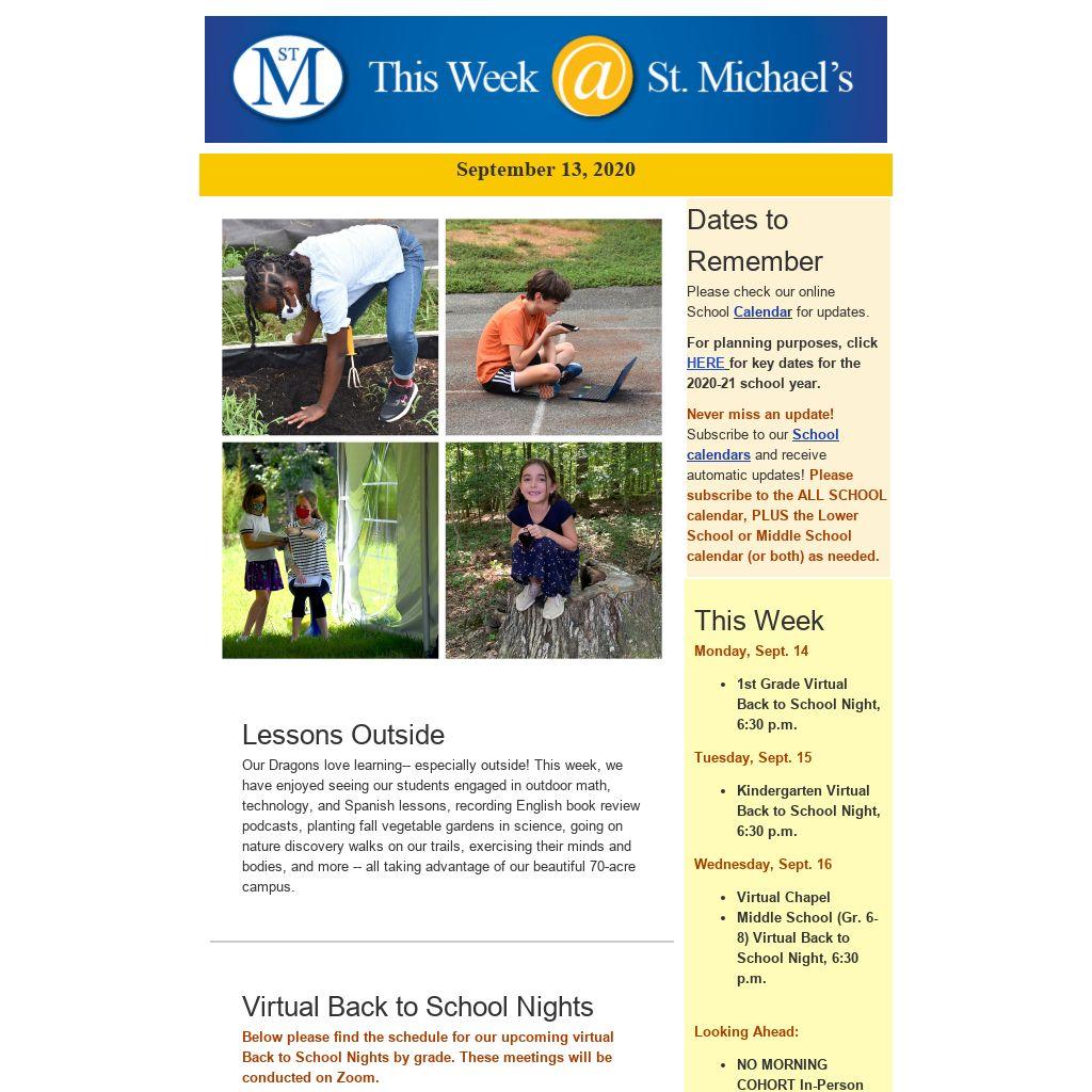 Current and past issues of "This Week at St. Michael's" are now archived on our website under "News and Events," as well as under "Community."