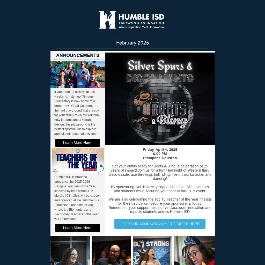 We are also celebrating the Top 10 Teacher of the Year finalists for their dedication. Secure your sponsorship today! Remember, your support helps drive classroom innovation and impacts students across Humble ISD.
