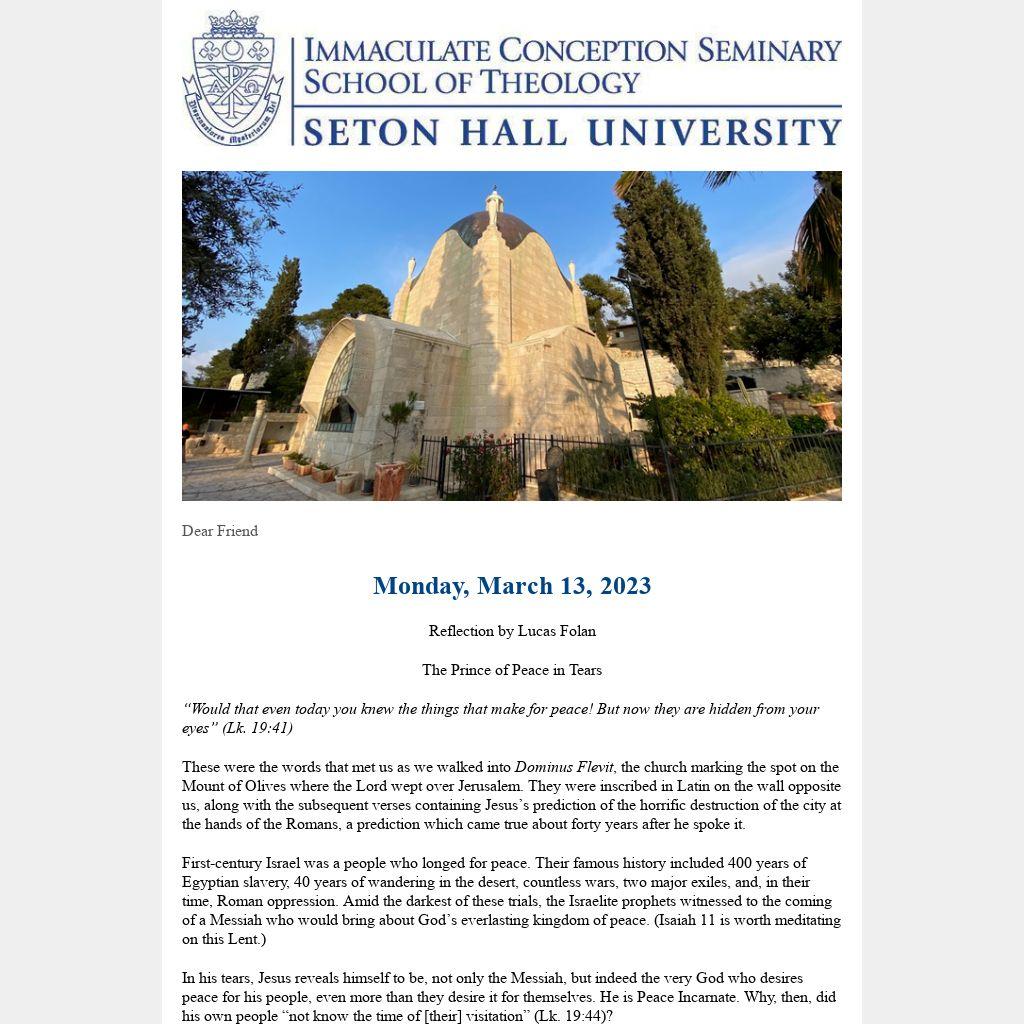 We can fruitfully apply this question to ourselves, especially during this holy season of Lent. We are unimaginably privileged to live on the other side of salvation history. Jesus, in offering himself on the cross to the Father as the perfect sacrifice of love, has shown us precisely what makes for peace. Indeed, we saw and tasted it for ourselves when we approached the altar for Holy Communion. Nonetheless, in our daily experience of sin and its burdens, we can recognize that, in many ways, the ways of peace remain hidden from us. This year, I hope to allow the Lenten practices of prayer, fasting, and almsgiving to transform my heart in such a way that it yearns, increasingly and uncompromisingly, for the peace of Christ, crowned King in his Passion, Death, Resurrection, and Ascension. Some thoughts shaping my resolves: