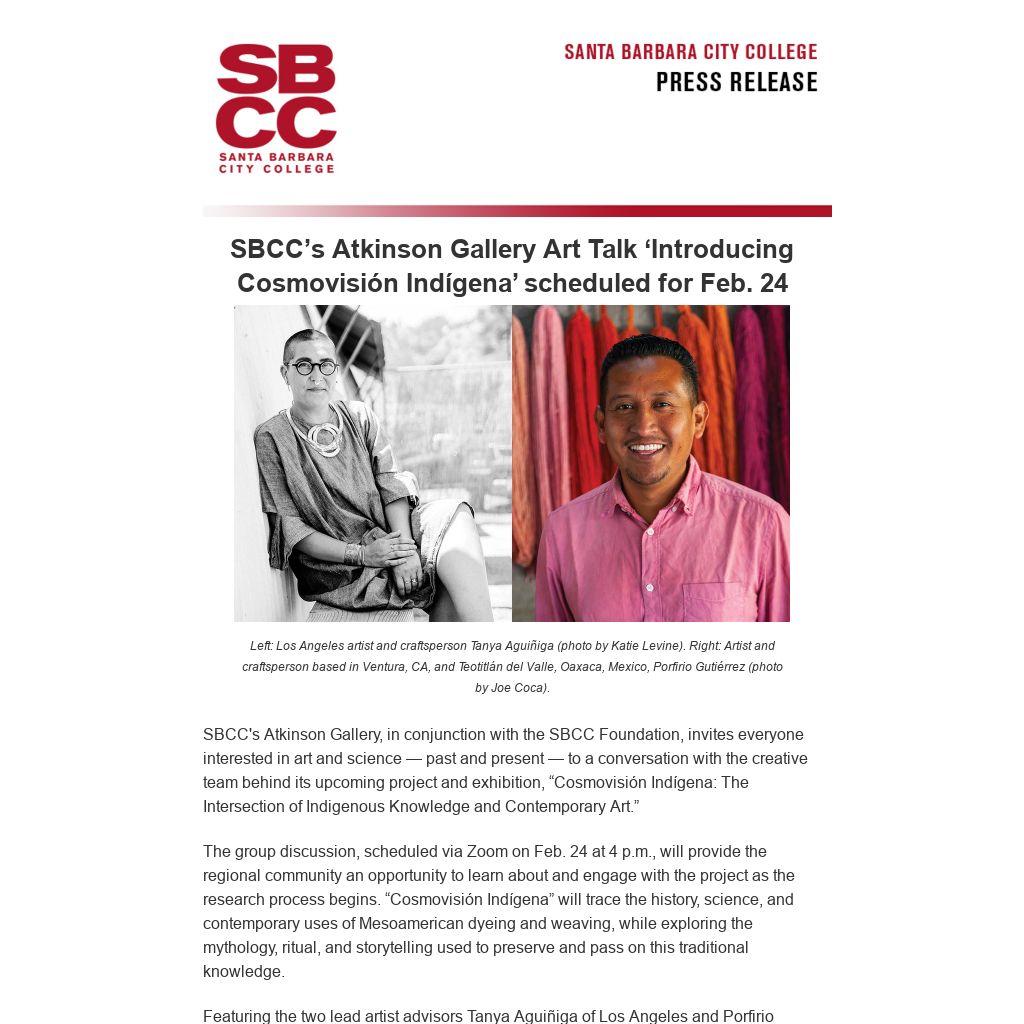 SBCC’s Atkinson Gallery Art Talk ‘Introducing Cosmovisión Indígena’ scheduled for Feb. 24