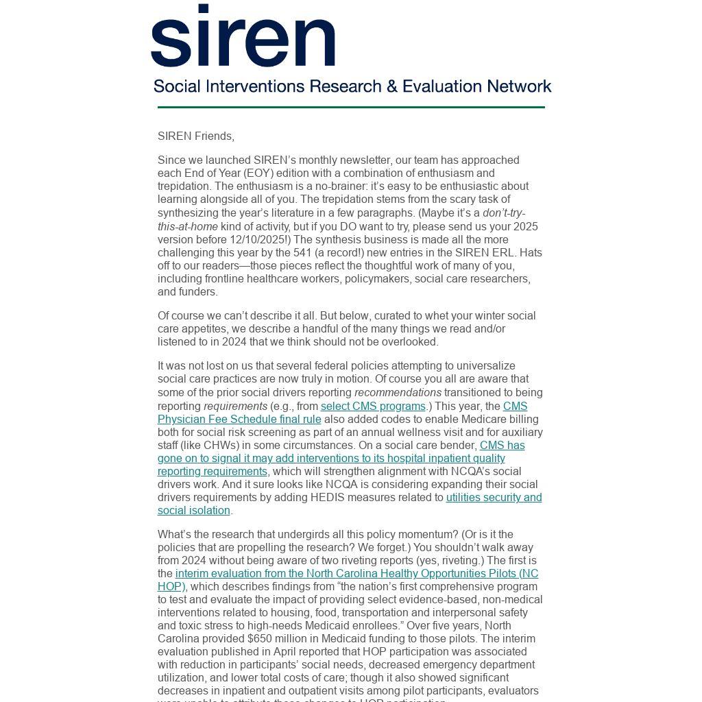 And now, to close out 2024, we’ll throw in some shameless self-promotion (self-promotion, for sure; shameless is up to us, I guess). There are two SIREN products/events that we would hate for you to miss. And they really seem like they would be of interest since you, remarkably dedicated social care reader, have read almost this whole letter!