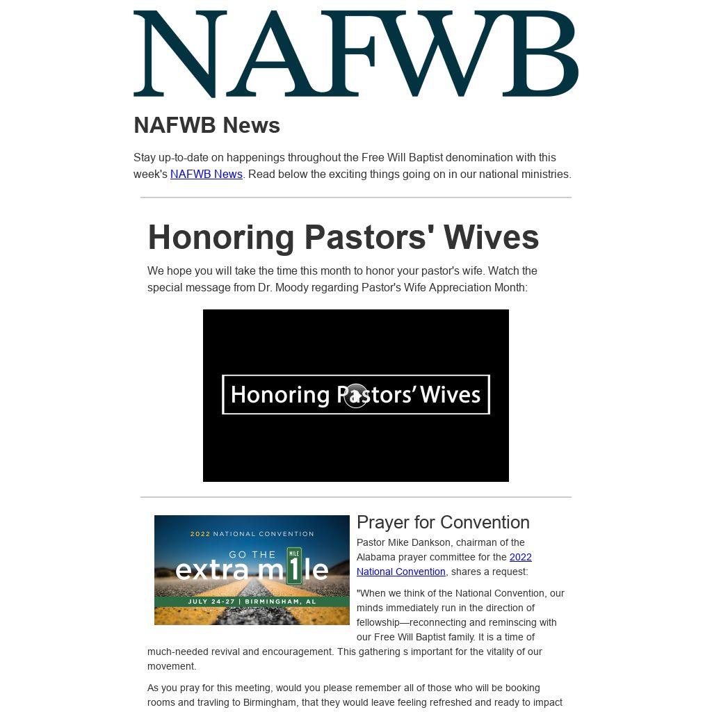 "When we think of the National Convention, our minds immediately run in the direction of fellowship—reconnecting and reminscing with our Free Will Baptist family. It is a time of much-needed revival and encouragement. This gathering s important for the vitality of our movement.