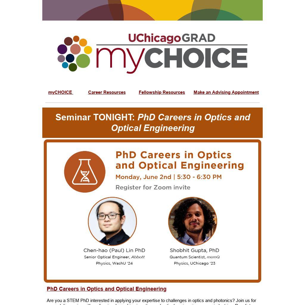 Seminar TONIGHT: PhD Careers in Optics and Optical Engineering |