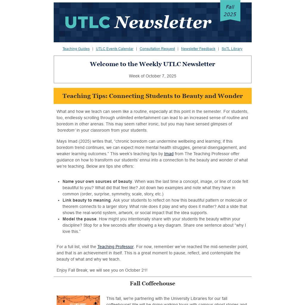 Welcome to the Weekly UTLC Newsletter |