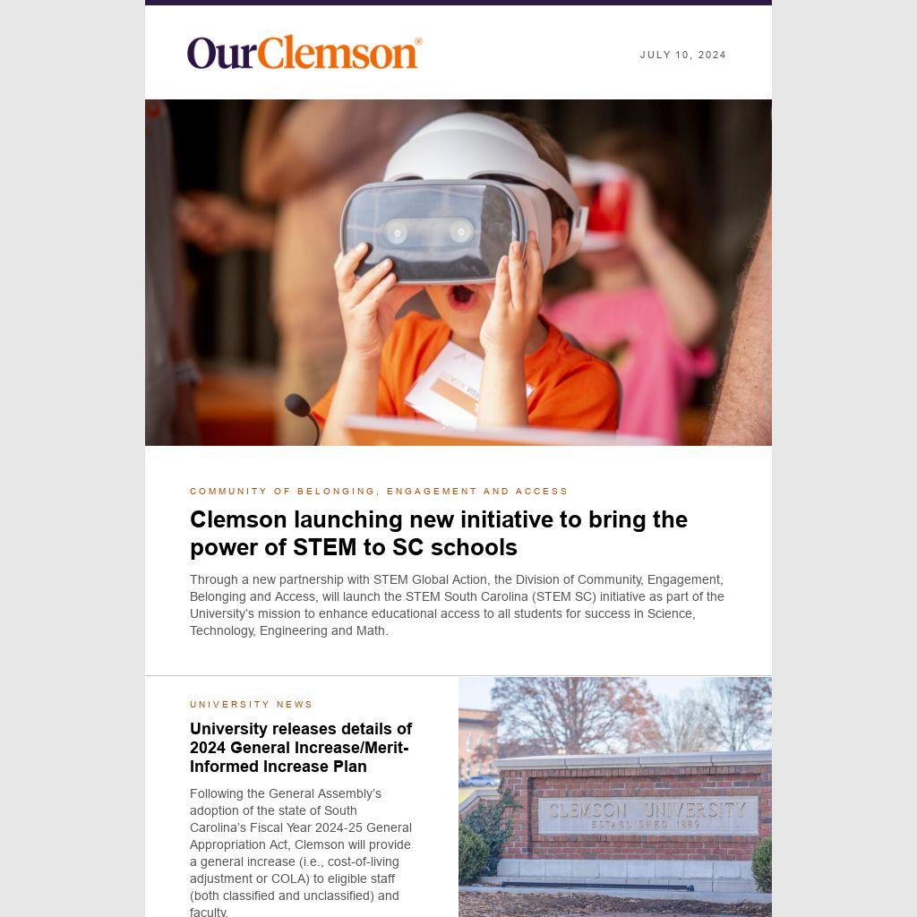Following the General Assembly’s adoption of the state of South Carolina’s Fiscal Year 2024-25 General Appropriation Act, Clemson will provide a general increase (i.e., cost-of-living adjustment or COLA) to eligible staff (both classified and unclassified) and faculty.