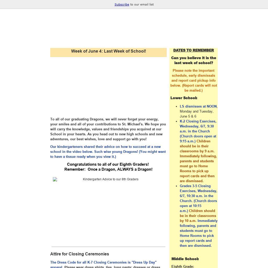 | To all of our graduating Dragons, we will never forget your energy, your smiles and all of your contributions to St. Michael's. We hope you will carry the knowledge, values and friendships you acquired at our School in your hearts. As you head out to new high schools and new adventures, our best wishes, love and support go with you!