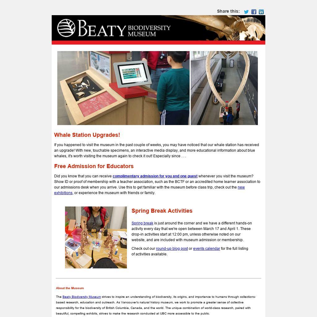 complimentary admission for you and one guest whenever you visit the museum? Show ID or proof of membership with a teacher association, such as the BCTF or an accredited home learner association to our admissions desk when you arrive. Use this to get familiar with the museum before class trip, check out the
