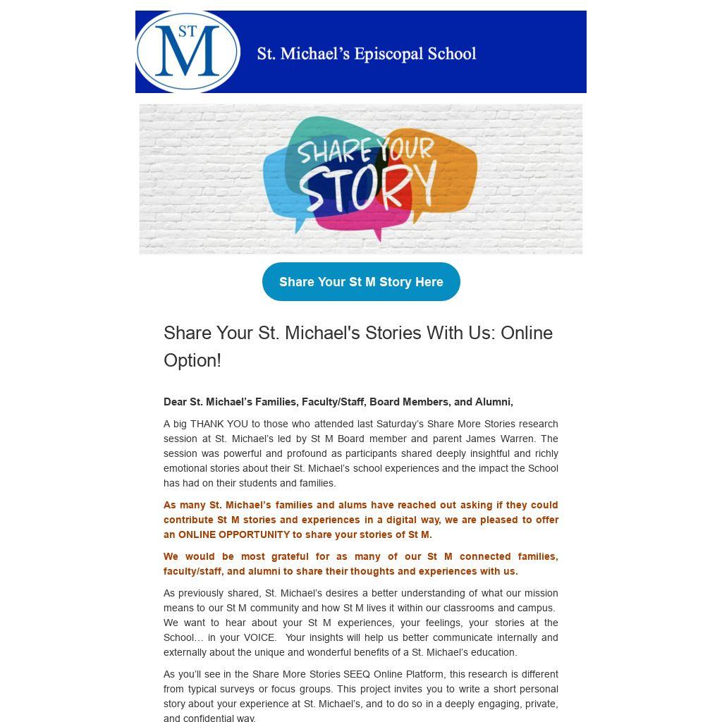 Share Your St. Michael's Stories With Us: Online Option!
