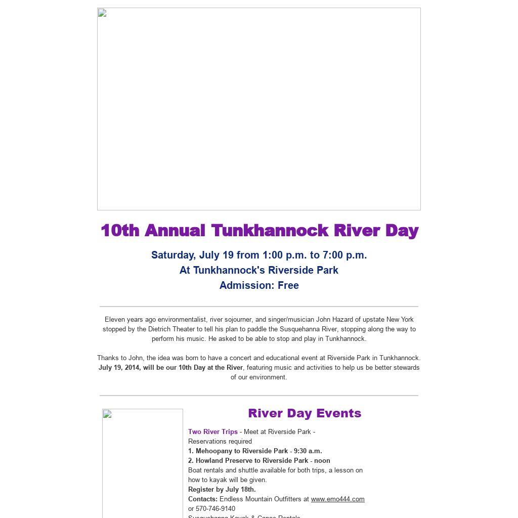 Endless Mountain Outfitters - Kayak display and River Trip, see Events above for details