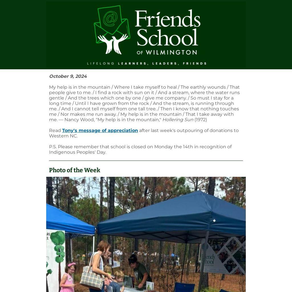 P.S. Please remember that school is closed on Monday the 14th in recognition of Indigenous Peoples' Day.