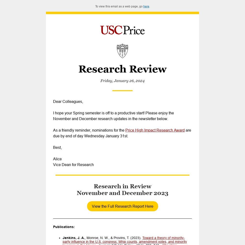 This email is brought to you by the USC Price Office of Research, Office of the Dean