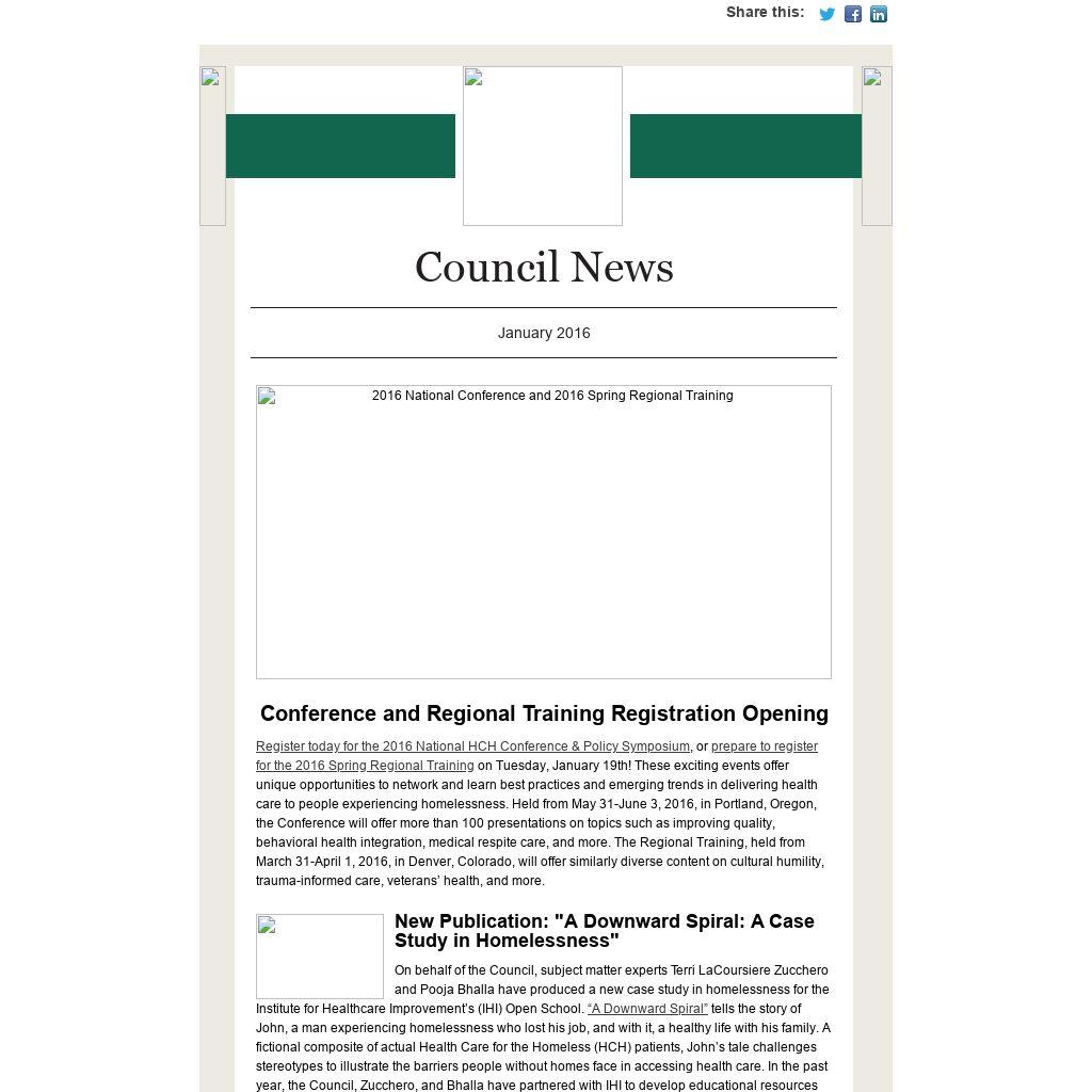 On behalf of the Council, subject matter experts Terri LaCoursiere Zucchero and Pooja Bhalla have produced a new case study in homelessness for the Institute for Healthcare Improvement’s (IHI) Open School. “A Downward Spiral” tells the story of John, a man experiencing homelessness who lost his job, and with it, a healthy life with his family. A fictional composite of actual Health Care for the Homeless (HCH) patients, John’s tale challenges stereotypes to illustrate the barriers people without homes face in accessing health care. In the past year, the Council, Zucchero, and Bhalla have partnered with IHI to develop educational resources on people experiencing homelessness and the HCH model of care. Read and review the case study.