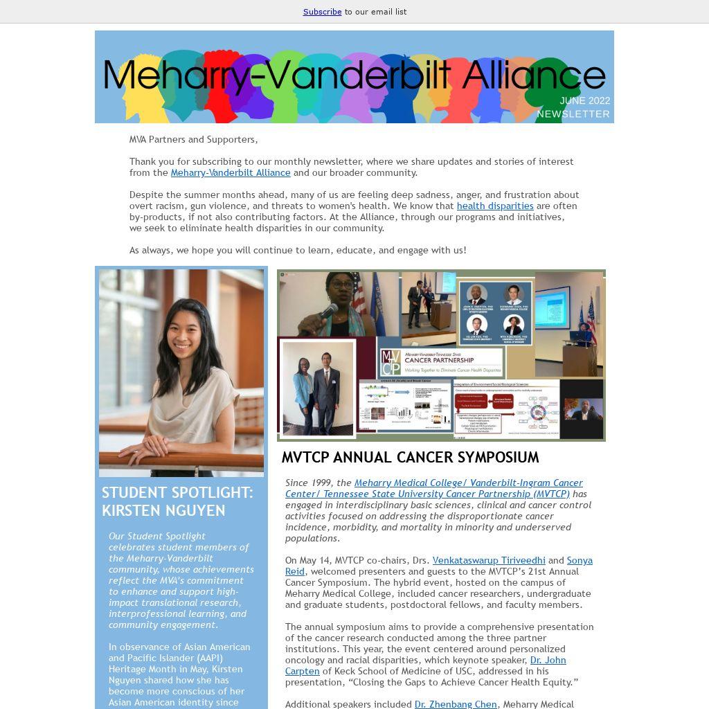 Thank you for subscribing to our monthly newsletter, where we share updates and stories of interest from the Meharry-Vanderbilt Alliance and our broader community.
