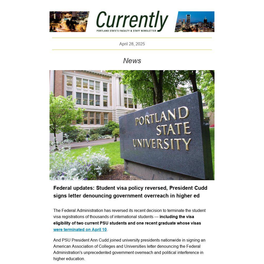 And PSU President Ann Cudd joined university presidents nationwide in signing an American Association of Colleges and Universities letter denouncing the Federal Administration's unprecedented government overreach and political interference in higher education.