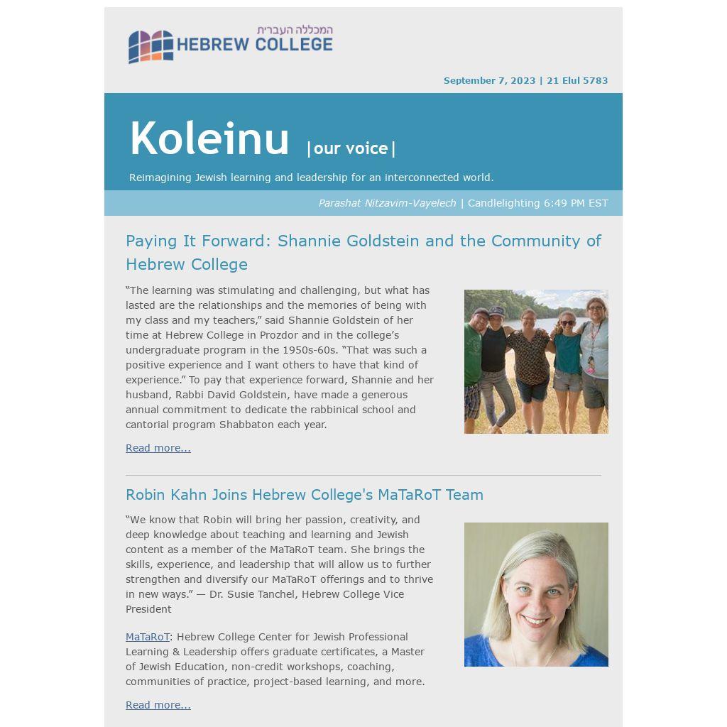 Paying It Forward: Shannie Goldstein and the Community of Hebrew College