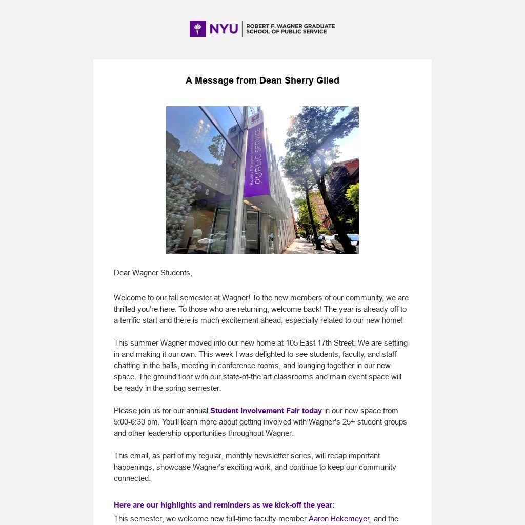 - Professor Laura Wherry was appointed to the Executive Office of the President’s Council of Economic Advisors. She will be on leave from NYU Wagner this academic year.