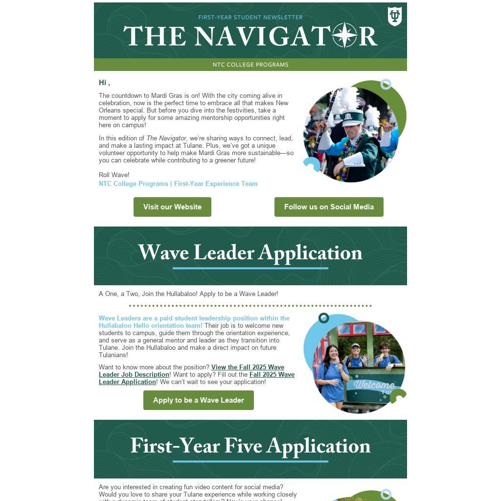 In this edition of The Navigator, we’re sharing ways to connect, lead, and make a lasting impact at Tulane. Plus, we’ve got a unique volunteer opportunity to help make Mardi Gras more sustainable—so you can celebrate while contributing to a greener future!